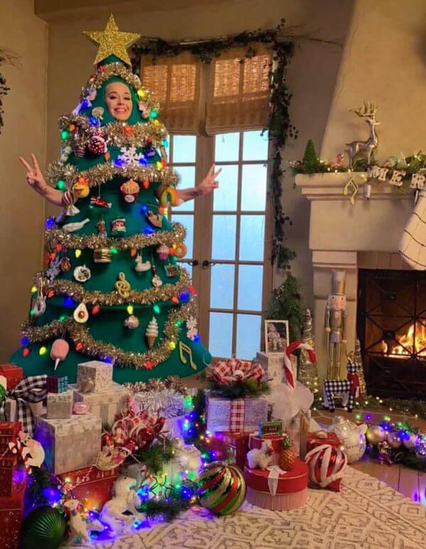 Sin duda uno de los vestidos más extravagantes es el vestido de árbol de Navidad de Katy Perry. Estamos seguras de que es la más festiva de todas las celebrities, ya que no solo se ha contentado con vestirse de árbol sino que también ¡lleva luces y adornos!