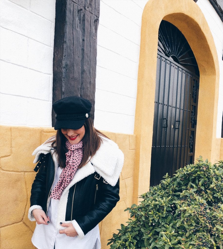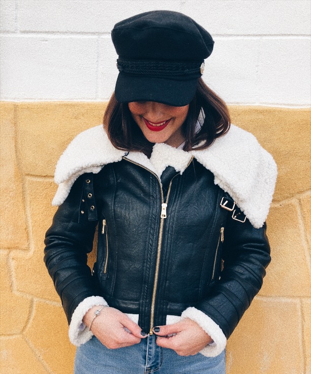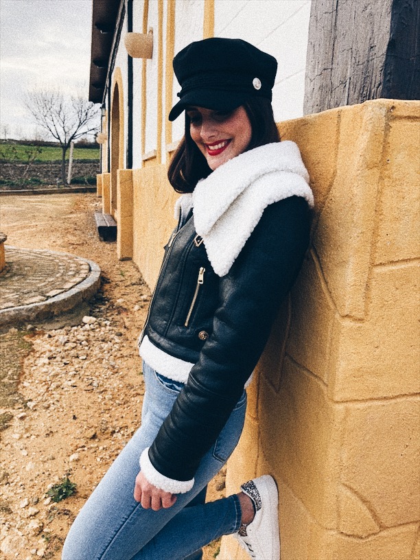 Como no, la chaqueta negra de piel con borreguito de Teria Yabar. Tiene un corte a la cintura y varias cremalleras doradas muy cañeras y rockeras. Su cuello está completamente forrado como ves de borreguito y tienes la opción de que una de sus partes es desmontable, por si en algún momento optas por querer llevar solo uno.