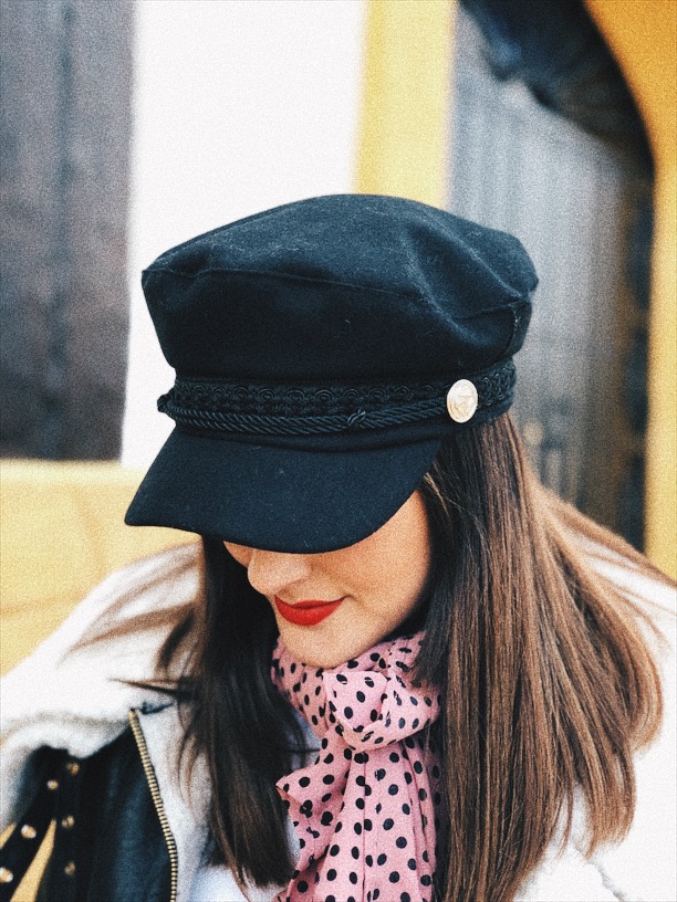 El abrigo de paño y lana rosa, es sencillamente adorable. Su corte militar, clásico, con botones cobre y bolsillos cuadrados le dan un toque muy chic y está disponible en varios colores.     Combinados con las zapas de Compañía Fantástica, una de las marcas favoritas disponibles en Mariquita Trasquilá.   Y este es, sin duda, uno de nuestros outfits favoritos. La gorra marinera que llevan las famosas, aquella que ha puesto tan de moda Paula Echevarría o Rocio Osorno, dos conocidas blogueras nacionales y que están a diario utilizando en sus looks. Por petición de clientas de toda España, ya la tenemos disponible en tienda y a muy buen precio: 7'19€. Es su fino cordón marinero y botones laterales lo que hacen que la gorra negra marinera sea tan original.