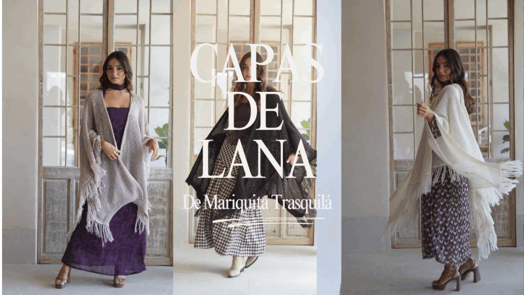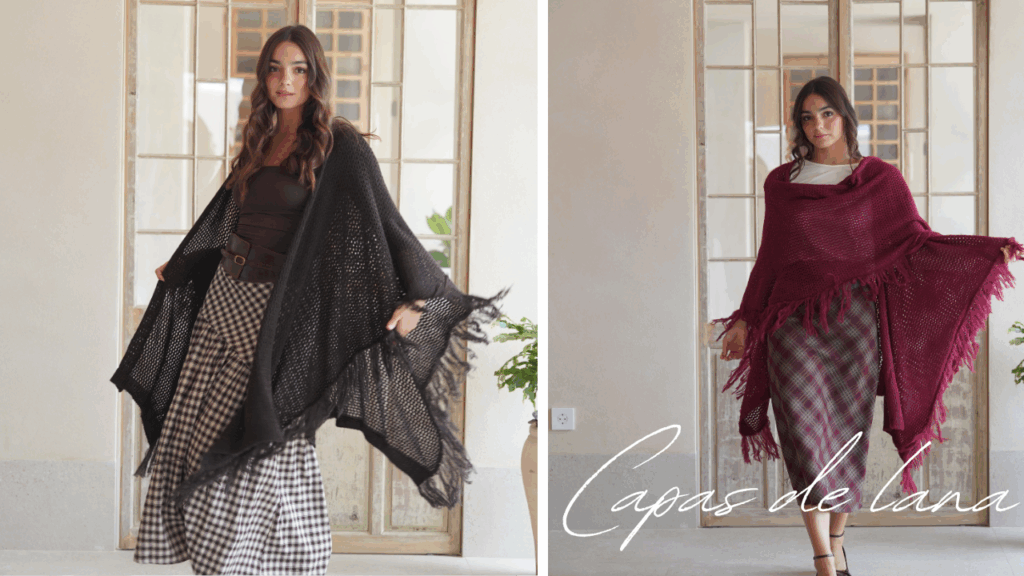 Las capas de lana aparecen en tejidos suaves, con estructura y caída natural, pensadas para sustituir al abrigo tradicional. Su encanto radica en que envuelven, estilizan y aportan esa elegancia que toda invitada busca al entrar en un salón (o al posar en una foto)