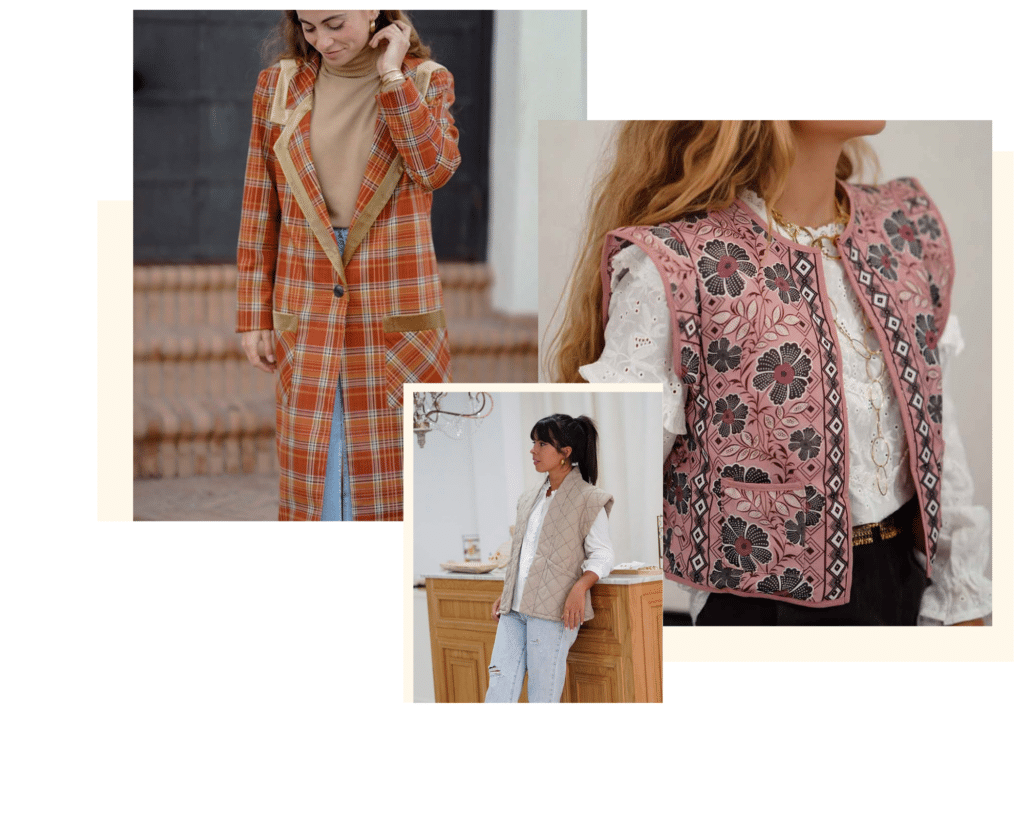Las chaquetas ligeras aportan el toque necesario para complementar las blusas estampadas o las faldas maxi. Suelen ser sin mangas, para que se aprecie la textura y el bordado de las blusas.