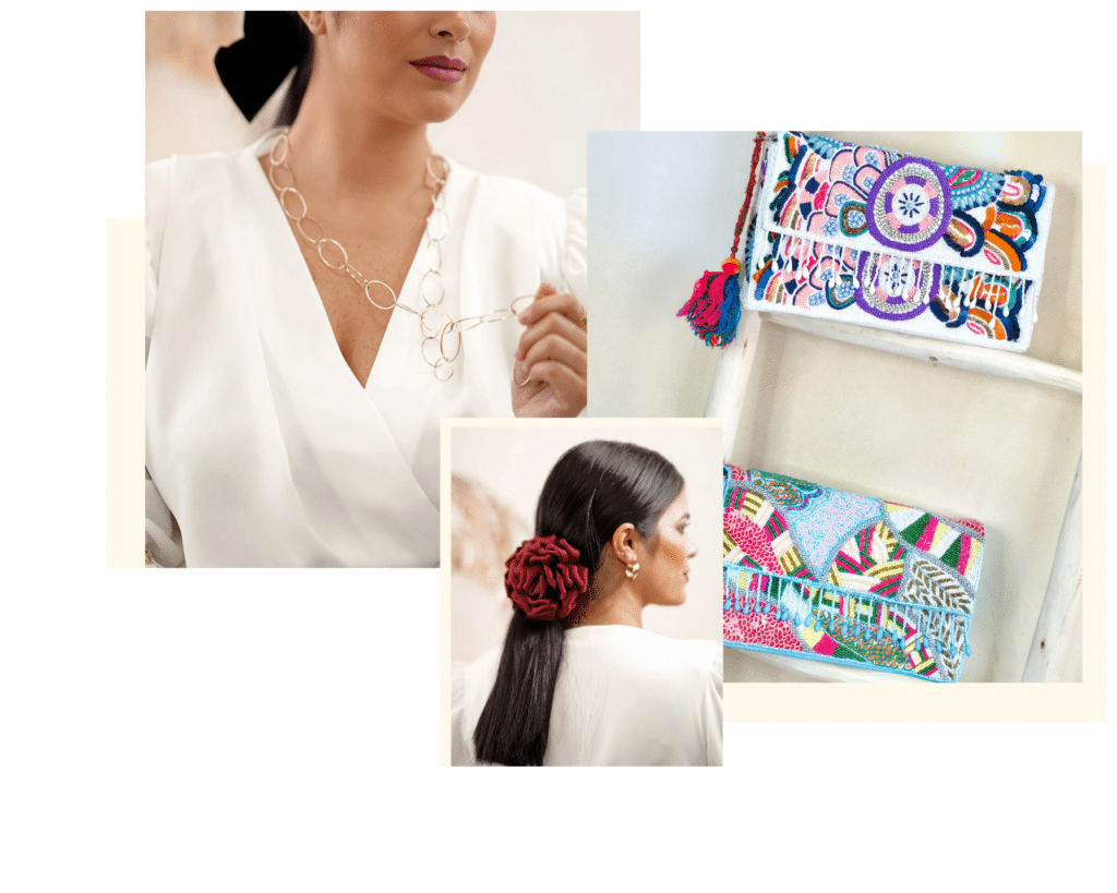 Los accesorios tienen un fuerte papel, con una presencia importante de mucha joyería artesanal o colgantes en dorado y sombreros tradicionales. Los Bolsos de cuero , bolsos estampados y sandalias doradas completan el look.
