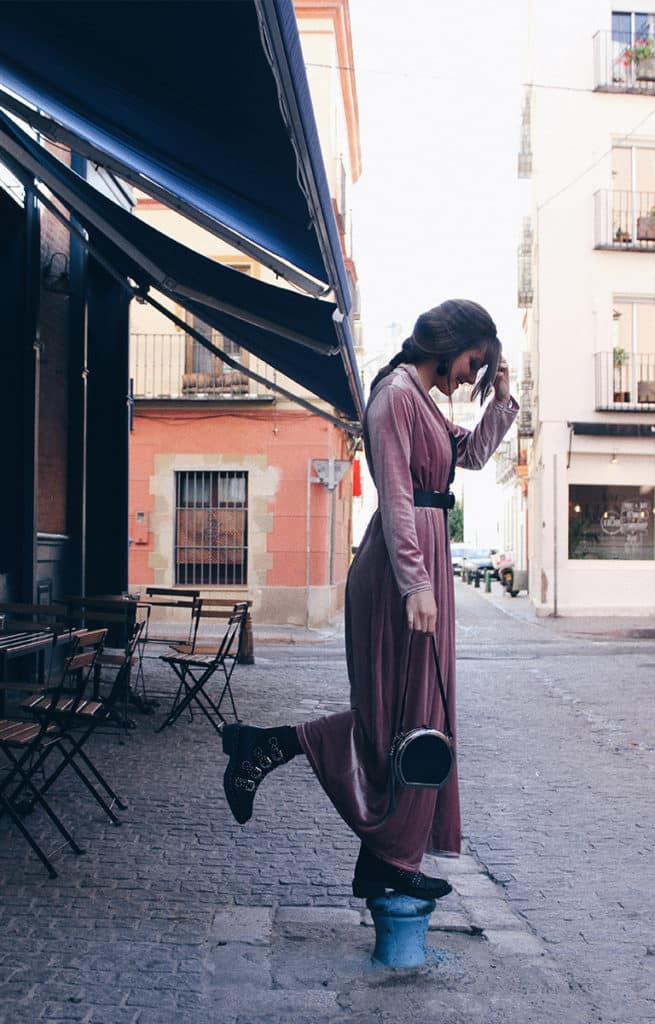 Un look para evento de fin de semana compuesto por un vestido de tirantes de licra negro, con detalles de flores bordados y pedrería. Es de corte midi. El kimono rosa aterciopelado de manga larga, que realza y estiliza la figura. Combinado con nuestros botines de hebillas negros con interior de piel de melocotón y este precioso bolso rodeado de material bañado en color plata rígido, asa de cuero, forrado de terciopelo negro y detalle colgante de acero. ¿No os parece sencillamente adorable? El kimono es talla única, es bastante elástico y os quedará genial.