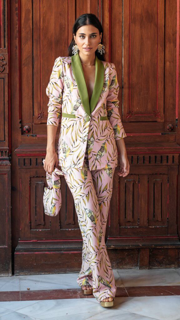 El estampado lleno de hojas y plumas forman siluetas preciosas haciendo de todas vosotras invitadas ideales, coloridas y estilosas. Esta línea es perfecta para aquellas que se sienten más cómodas con todos suaves y líneas sencillas.