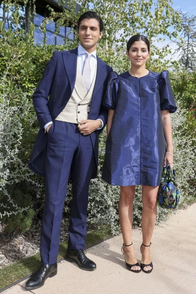 Tal y como dicta el protocolo tradicional en las bodas de día, la influencer ha optado por un vestido por encima de las rodillas. Concretamente, ha elegido un modelo de cuello a la caja y manga corta abullonada con silueta acampanada confeccionado en un tejido azul marino con mucho cuerpo. Lo ha acompañado de unas sencillas sandalias con tacón fino y pulsera al tobillo, así como de un bolsito estampado.