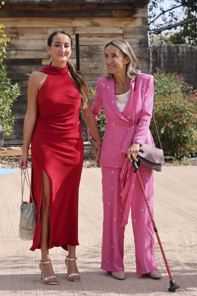 Su madre ha llevado un traje de la misma marca, hecho en satén de seda rosa bordado con motivos florales en tonos champagne. Lo ha lucido con un top de costura a medida confeccionado en satén de seda y salones a juego.