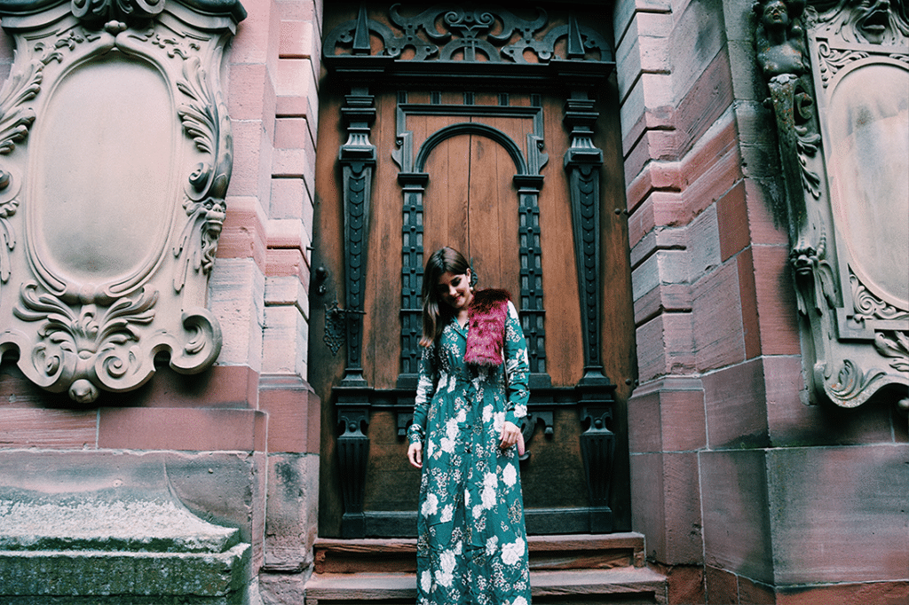 Nos vestimos de largo con este vestido para adentrarnos en la historia de un pueblo encantado, un pueblo lleno de leyendas dentro de un castillo construido entre los siglos XIII y XVII. Hablamos de Heidelberg, en Alemania, a escasos kilómetros de Frankfurt.